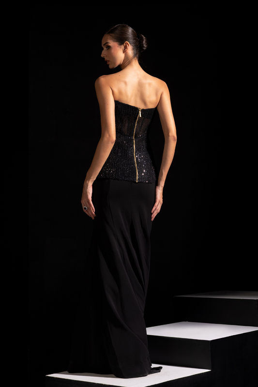 Black Corset with Embellished Skirt - Raven