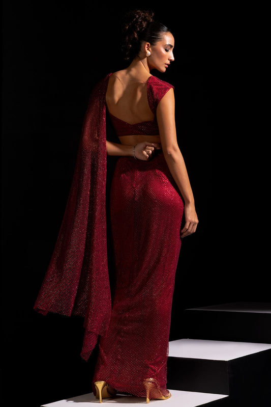 Red Pre-draped Saree - Marsala