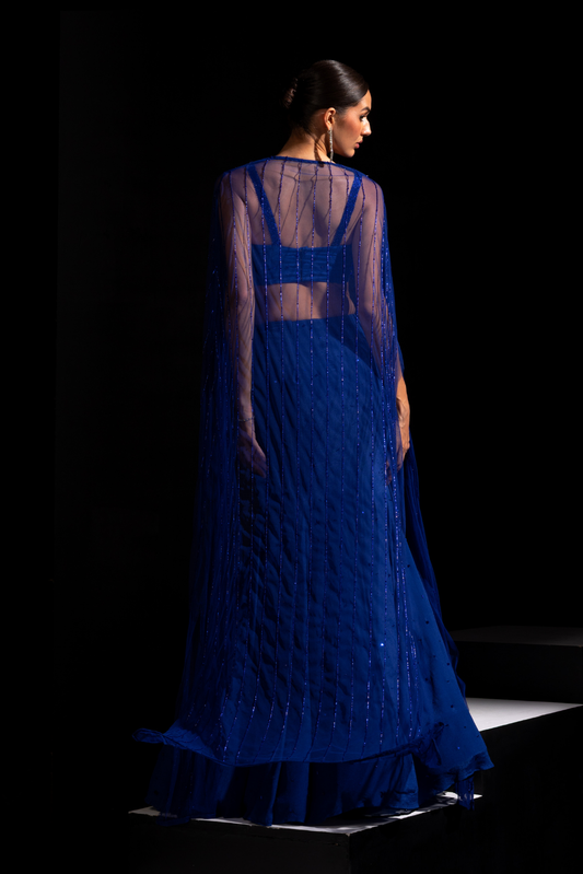 Electric Blue Blouse, Fishcut Skirt with Cape - Sapphire