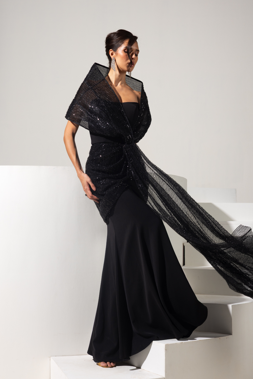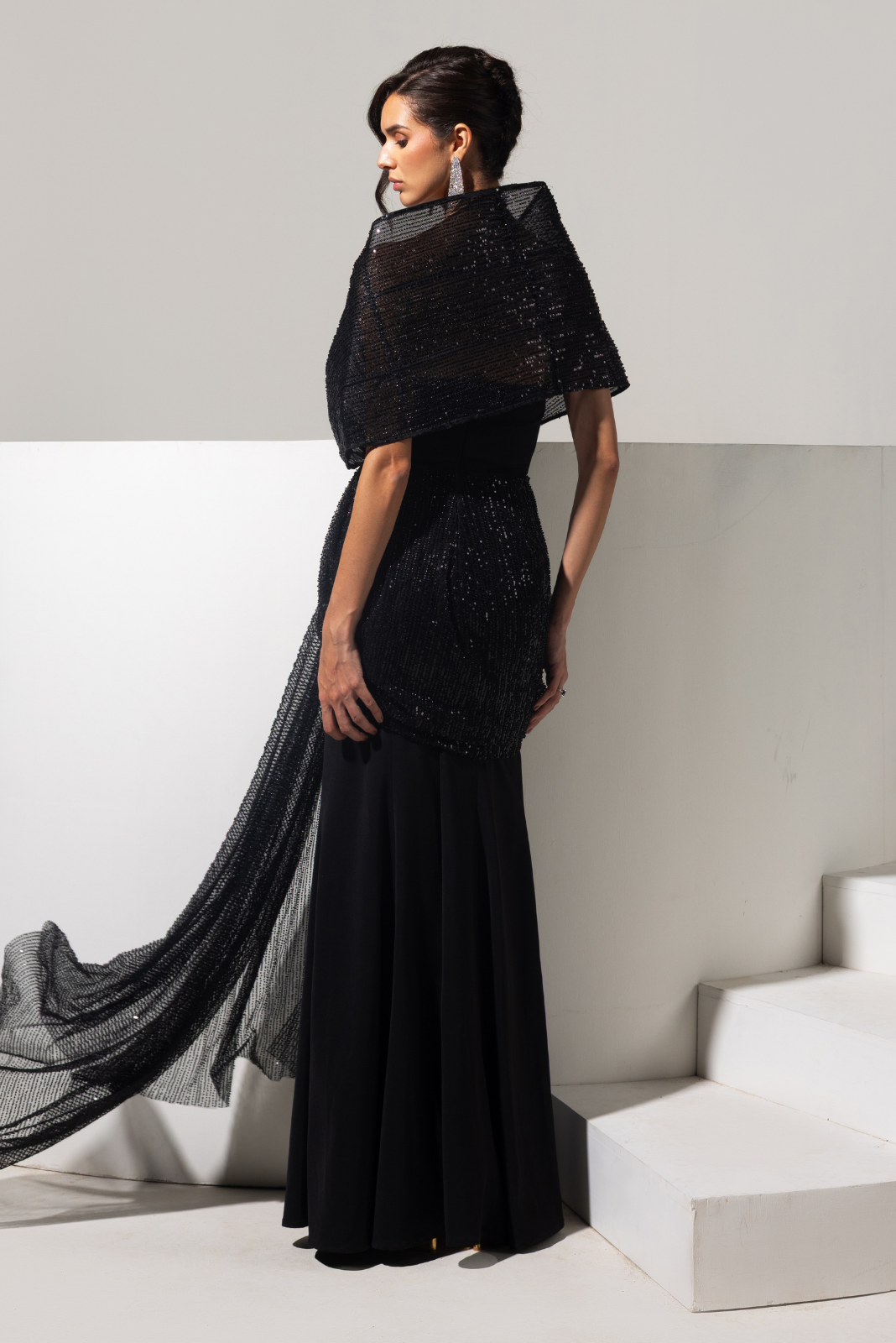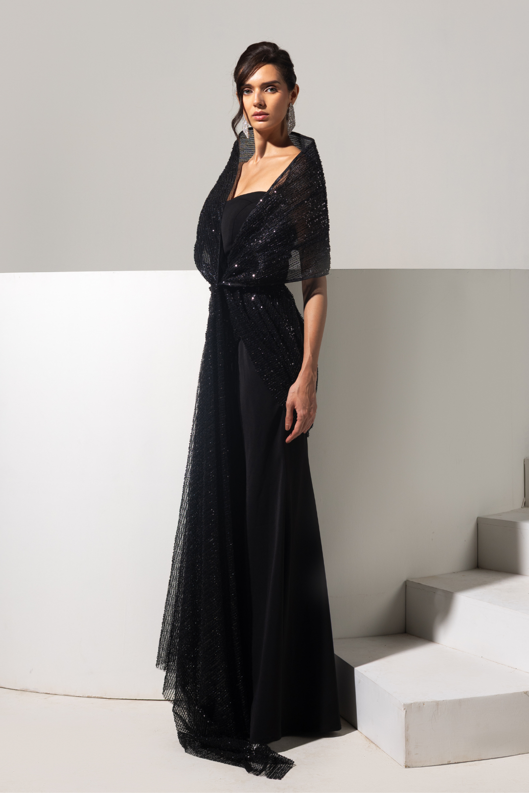 Black 3d Embellished Gown - Shadow
