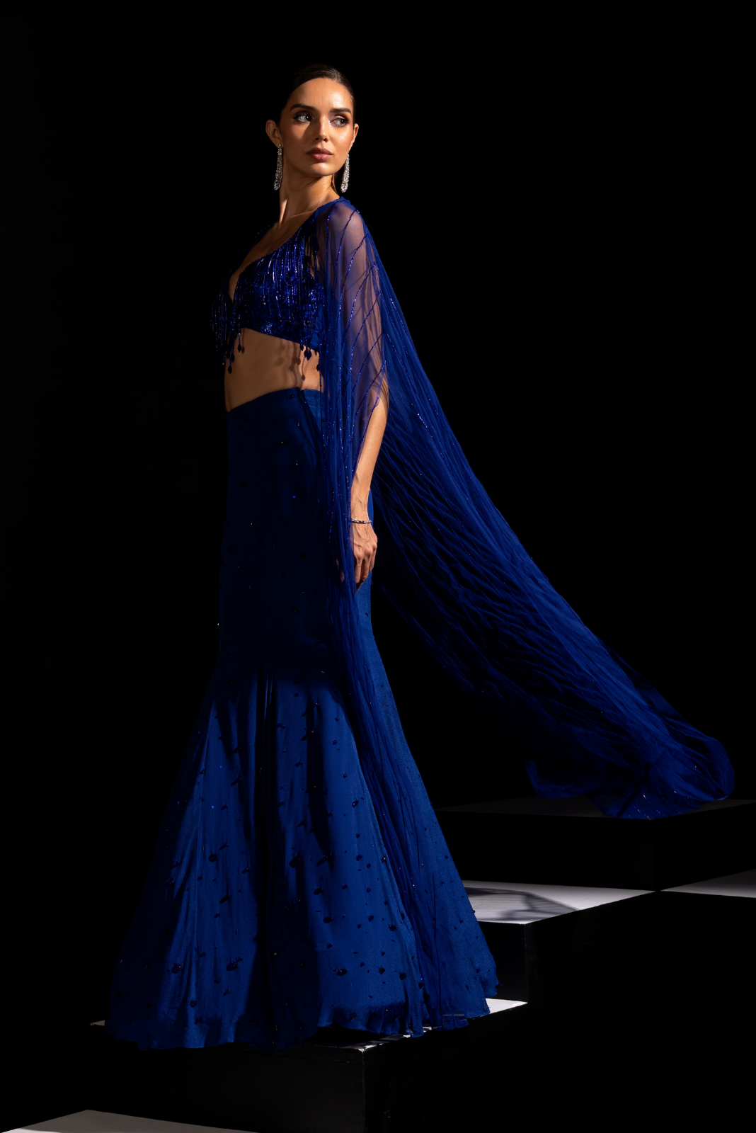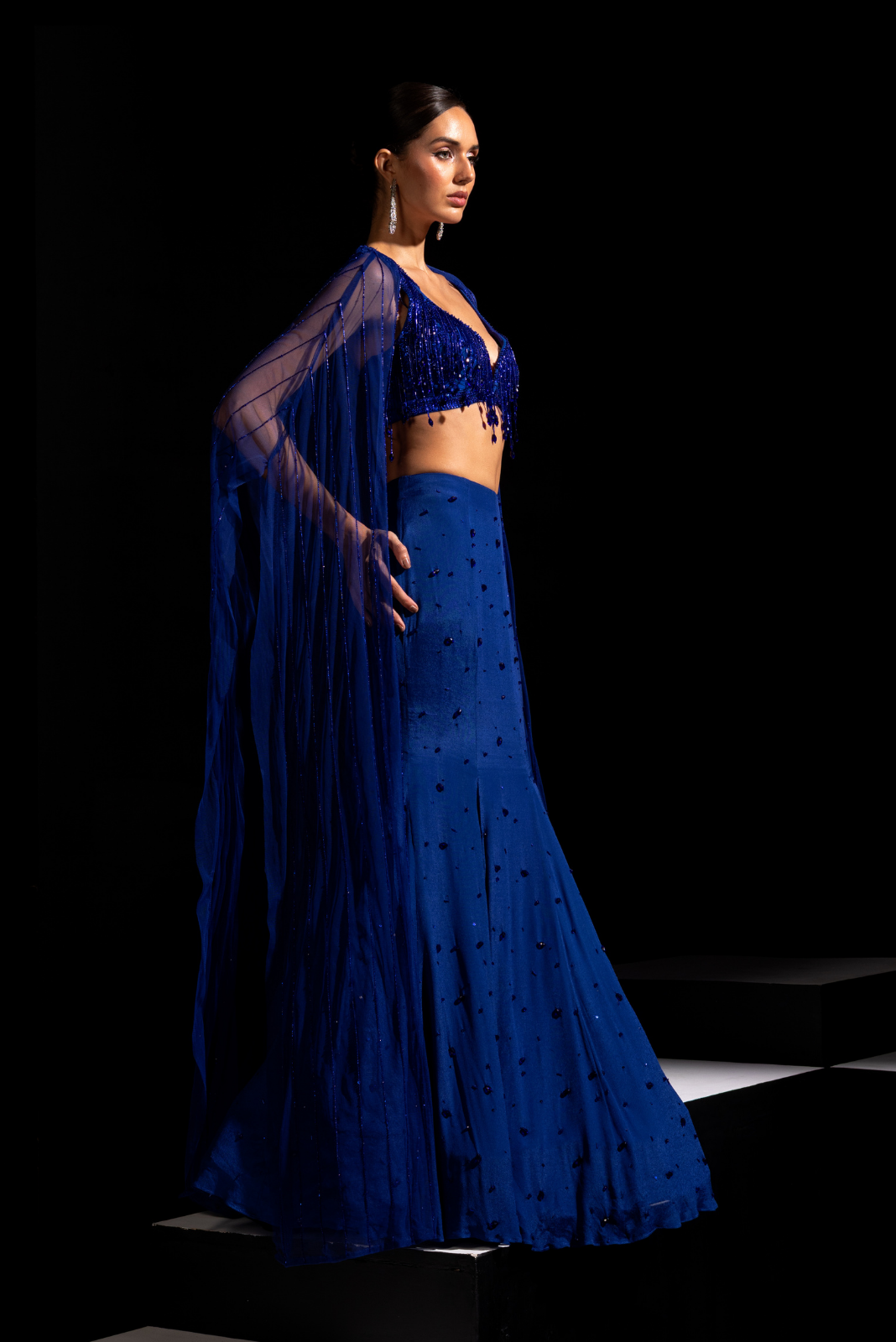 Electric Blue Blouse, Fishcut Skirt with Cape - Sapphire